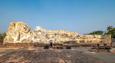 是古都大城遺跡中最著名的景點之一。以一尊壯觀的露天臥佛聞名,臥佛長達42公尺、高約8公尺,是泰國最大的室外臥佛像。儘管周遭殿堂已成廢墟,臥佛仍完整留存,是當地重要的古蹟。