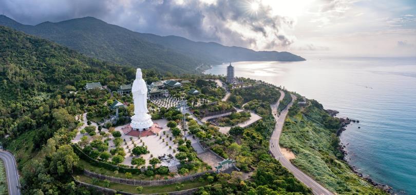 山茶半島位於峴港東北邊,有著大面積的原生森林,景色宜人。坐落在南面山腰處的靈應寺裡有一座白玉觀世音菩薩像,高達65公尺,除了燒香拜佛,還能眺望峴港市區風景。山茶半島的山頂有美軍遺留下來的直升飛機停機坪,不過現在已經變成了一個瞭望台。在山茶半島的西面有一片小小的Tien Sa海灘,海灘附近有一座紀念碑和一座小教堂。