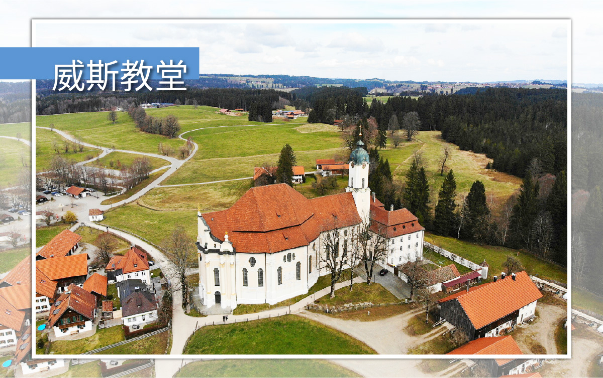 【威斯教堂】此教堂於1983年被列為聯合國教科文組織所保護的世界遺產,為洛可可式建築,於18世紀德國宗教建築中最崇高傑作,被稱為「巴伐利亞草原奇蹟」。