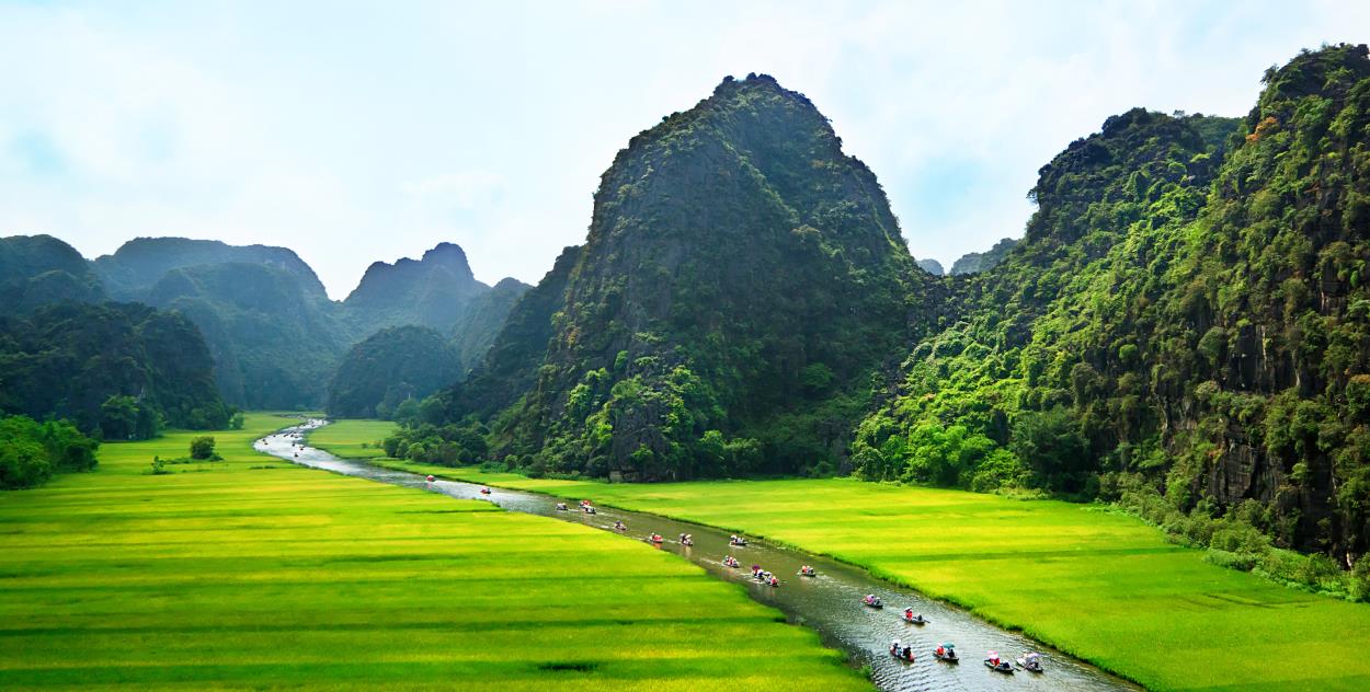 《陸龍灣》是由高聳山脈、石灰岩洞與溪流組成,大自然的傑作使得這裡成為世界上最美麗的地方之一。其中的《長安生態區》地質年齡約2.5億年、考古發現3萬年前這裡就有人類活動的跡象,並在2014年被列為「自然與文化雙重遺產」。《長安生態區》包含濕地生態、石灰岩石、寶塔寺廟、田園與小村莊;乘坐小舟輕遊《長安生態區》是最棒的旅遊方式,穿梭在山巒洞穴間、沉浸在如此寧靜特殊景觀內,回歸自然、徹底洗滌身心靈。