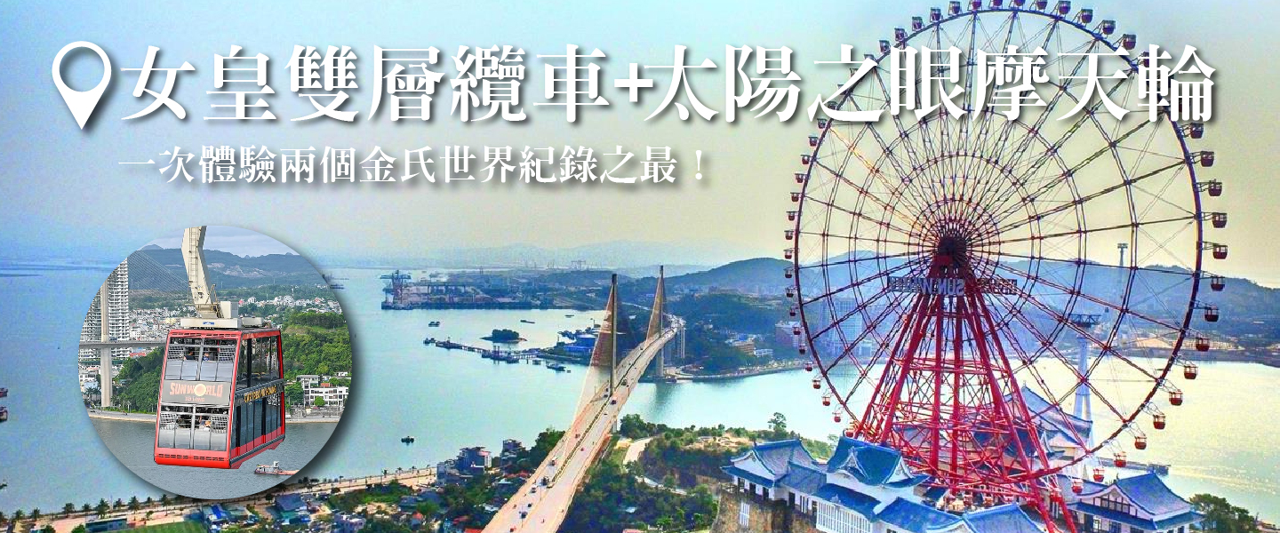【皇后雙層纜車】由世界著名的纜車公司奧地利Doppelmayr和瑞士Garaventa設計。世界上最高的纜車支柱,高達18,888米,纜車長約2.2公里,共有兩層車廂,可容纳230人,創下金氏紀錄世界最大纜車。您可以愜意地欣賞下龍灣美景,享受360度視野不受限,還能眺望下龍灣以及鴻基島的美麗景緻盡收眼底。