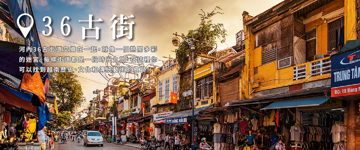 【36古街】輕鬆瀏覽這古色古香的傳統商店街,感受在地人的怡然自得。源自十五世紀,每一條狹窄的街道均以當時交易的商品來命名,如絲街、米街、紙街、珠寶街等,共有36條,並於古街內可自費訂製一個花漾年華旗袍、包包、鞋子,完全為您量身訂做的回憶。